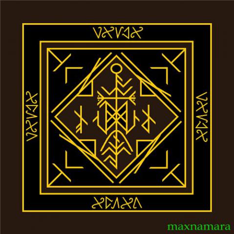 elli-hvild, лёгры прям и перев.- они же зерк.эох, cweord, ear/он же cweord прям и зерк.; stunginn iss + 2 stunginn kaun; stan, в нем два хагатля, 4 торн; перевёрнутые ур прям. + нёйз и ур зерк. + ар + зерк. лёрг; нёйз + перев. тир. Короче старость в болячках, бессилие и быстрое сгорание всего организма. Йеры давы для зацикливания ситуации, где урожаем станет быстрая старость и угасание, в могилу и камень (под пресс) + если посмотреть (я цвета специально дала разные, чтобы было видно), то видно, что середина находится в кресте, похожем на могильный, все упаковано в пеорты, повернутые во внутрь+ торны, снаружи Хагалаз+Наутизы, далее… все находится в коробке из ис. Название Дауга, написано сварт-рунир для усиления черной магии..