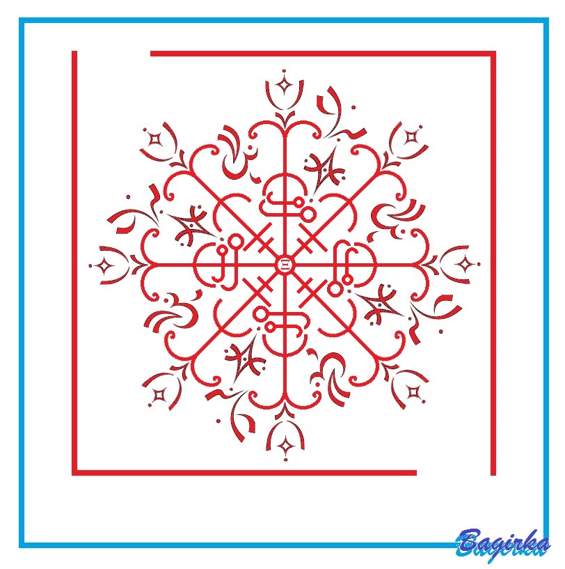 Центр — Греческий Символ «Kси» — для достижения успеха и благополучия, для объеденения действия всех рун, символов и глифов, а также для усиления работы всего става;