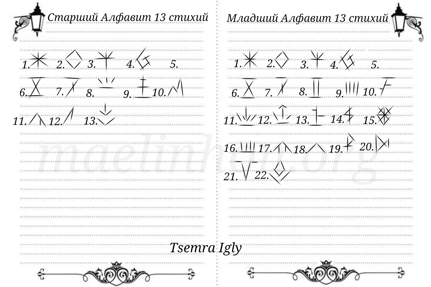 1 — 7 знаки соответствуют аналогичным из Старшего Алфавита.