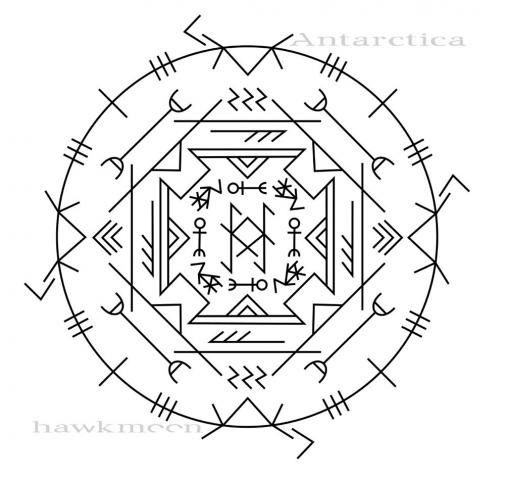 Уруз пп + Совило зп + 2 Тейваз пп + Райдо пп + Хагалаз (звездочкой) + Хагалаз вп (как в СФ) + Изгоняющий Крест пп вп (Райдо + Наутиз)