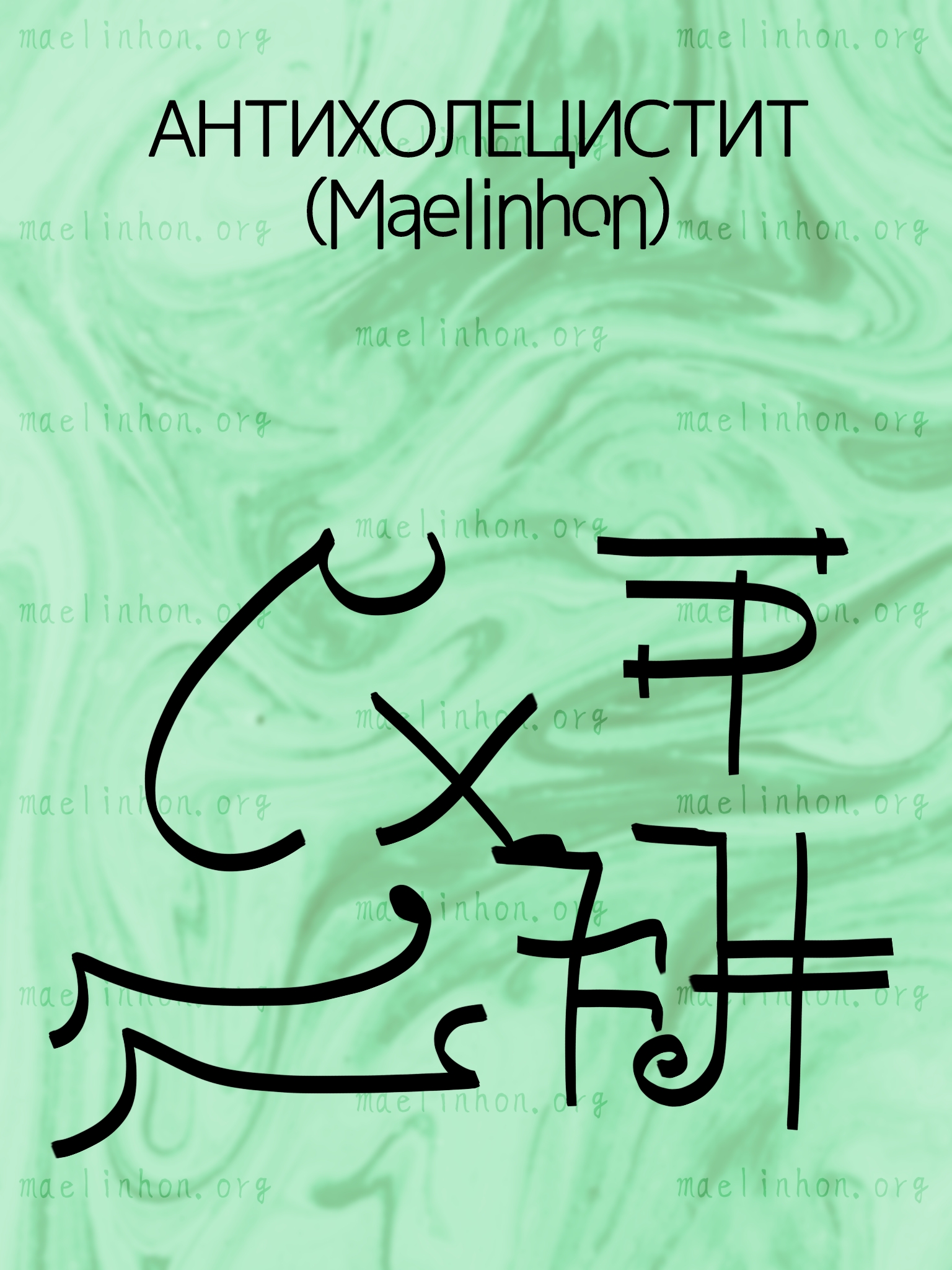 В составе глифы Яфета и знахарские Литеры Черных людей. Рисовать на левой стороне тела и на воде, которой запиваете лекарства (можно и так, и так).