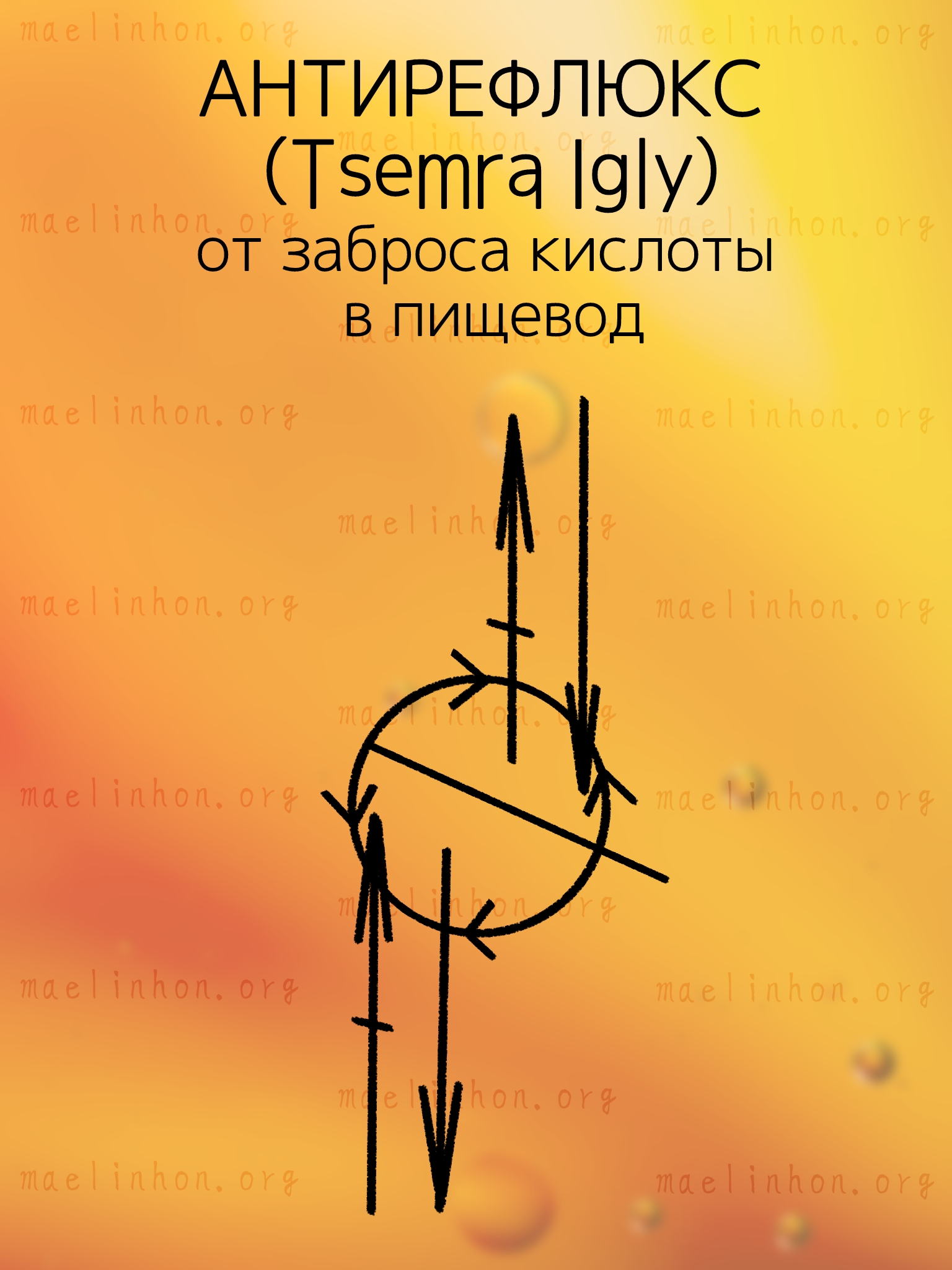 Сигила, направленная на уменьшение частоты и интенсивности заброса желудочного сока в пищевод и содержимого тонкого кишечника в желудок. Применять при ГЭРБ и изжогах, но ни в коем случае не заменять сигилой полностью медикаментозное лечение.