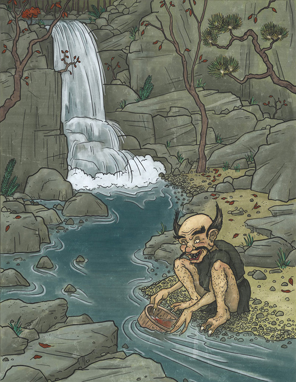Азуки-арай – это один из таинственных ёкаев, встречающийся в горных районах, глубоко в лесах, по всей территории Японии. Чаще всего Азуки-арай встречается у горных ручьёв, особенно у тех, что очень труднодоступны для человека. Этого ёкая скорее слышно, чем видно, поэтому описаний его внешности существует всего несколько. Однако, все они говорят, что Азуки-арай низкого роста, с огромными глазами и похож на страшного одичавшего буддийского священника. На его руках лишь по три пальца, на ногах по два, а с лица не сходит ужасная улыбка, что больше напоминает оскал.