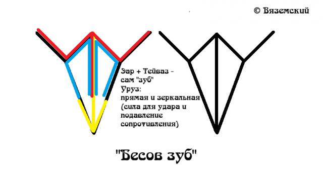 Эар+Тейваз — сам «зуб», некое шило или игла, кому как нравится.