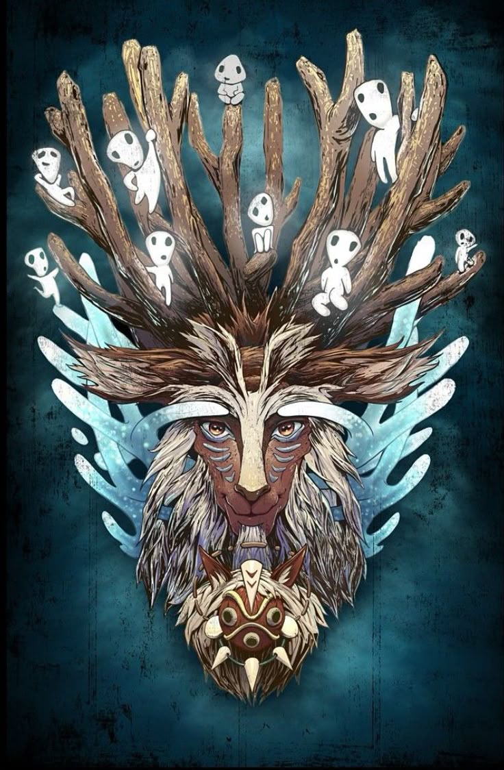 В мультфильме “Принцесса Мононокэ” того же Миядзаки рассказывается, что произойдет с тонкой “экосистемой”, если таких духов никто не будет контролировать. Истекающий грязной энергией Ша Бог-кабан отравлен этой энергией и заражает ею все живое. Главный дух леса, дальрам-управитель что похож на оленя – это хозяин этого места, его задача – следить за благополучием всех обитателей: и деревьев, и животных. Он знает, кому еще нужно жить, и кому уже пришло время умирать. Именно он может очистить лес от Ша и даровать покой мононокэ. Поэтому, когда хозяину леса отрезают голову, весь лес начинает стремительно погибать. А когда духи деревьев, Кодама, чуют его появление, они начинают “вибрировать”, синхронизируясь с общими потоками сил. Кстати, Тоторо — тоже хозяин леса, только из другого племени дальрам 🙂 Ночами хозяин ходит и как бы “поливает” свежей энергией весь лес. Подойдите утром к опушке, почувствуйте, как деревья словно кто-то “обновил” за ночь 🙂 Как много бы духов ни было в лесу, главный лесовик и смотрит, и чистит, и регулирует работу даже самых маленьких дальрам.