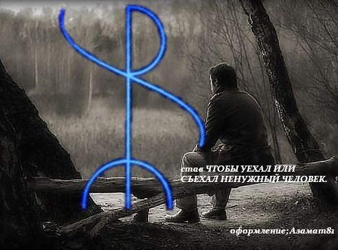 Данный гальдрастав разработан из рун Райдо, Наутиз, перевернутый Альгиз. Смысл гальсдрава- вызвать желание вынужденное к дороге (отъезду) без возможности остаться (перевернутый Альгиз убирает защиту и якорь, что может задержать). Применять можете по разному.