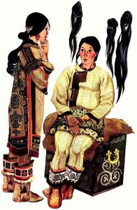 Нет ответа, тихо снаружи. Ни шагов, ничего. Подождала немного, откинула острогой полог, да так и замерла: на земле одежда летняя лежит, нарядная. Парка и штаны женские, лосиным мехом подбитые, да белыми камнями из речных моллюсков украшенные. Заглядение, а не одежда — точно небо ночное. Надела девушка подарок, и стала в нем с тех пор ходить.