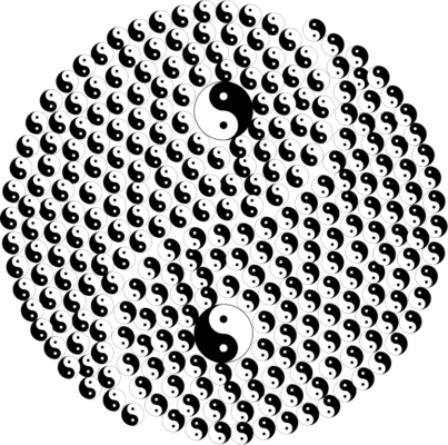 Чтобы понять основную яму, надо сначала понять устройство мира. Это несложно, кто хоть раз пробовал психоделики, знает эти фракталы, где самый большой уровень переходит в самый маленький 🙂 Весь мир, вся вселенная — это одна такая большая двойка. Пара. Весы. Инь-Ян. Коромысло. Короче, хренотень с двумя полюсами, которые друг друга балансируют. Когда Инь находит Ян, они притираются друг к другу, становясь единым целым в этой двойке, и вместе становятся сильнее, становятся «дуальной единицей», которая крупнее их каждого по отдельности. Теперь они могут сливаться с другой системой, через взаимодействие и взаимную работу стать двойкой на порядок крупнее. Эта пара находит себе антипод еще уровнем выше… И так до бесконечности. Представьте себе поле из значков инь-ян, которые сами состоят из более мелких инь-ян и так слоями от мелкого до гигантского.