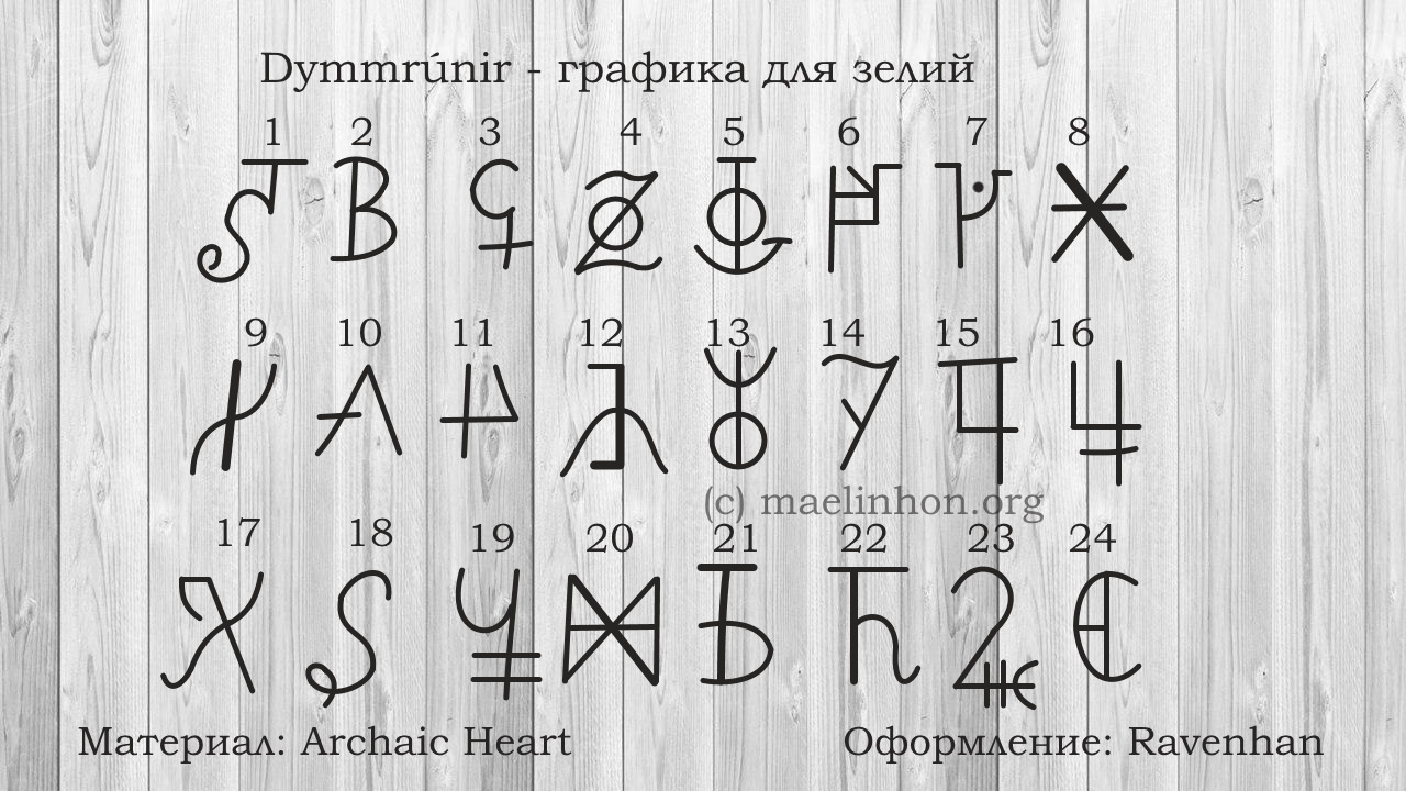 Магический алфавит — руны для зелий, опоев, окормов… Подходит для амулетов, ведьминых мешочков и бутылочек. Наиболее эффективно сочетать с ингредиентами, созвучными действию знаков алфавита. Требуют очень четкого оговора.