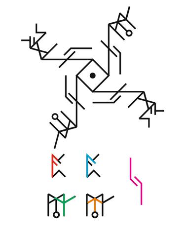 Состав начерчен, но + Эйваз, Наутиз, Пертро, Манназ и Ингуз в центре с точкой (оператор).