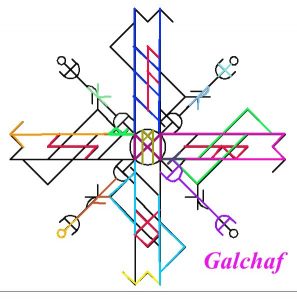 Вертикально-горизонтальные лучи:3 Хагалаз, Ансуз \Райдо\Отила\Эйваз, 2 Турисаз, Совило. Тейваз, Эваз, Райдо, Наутиз, Йера.