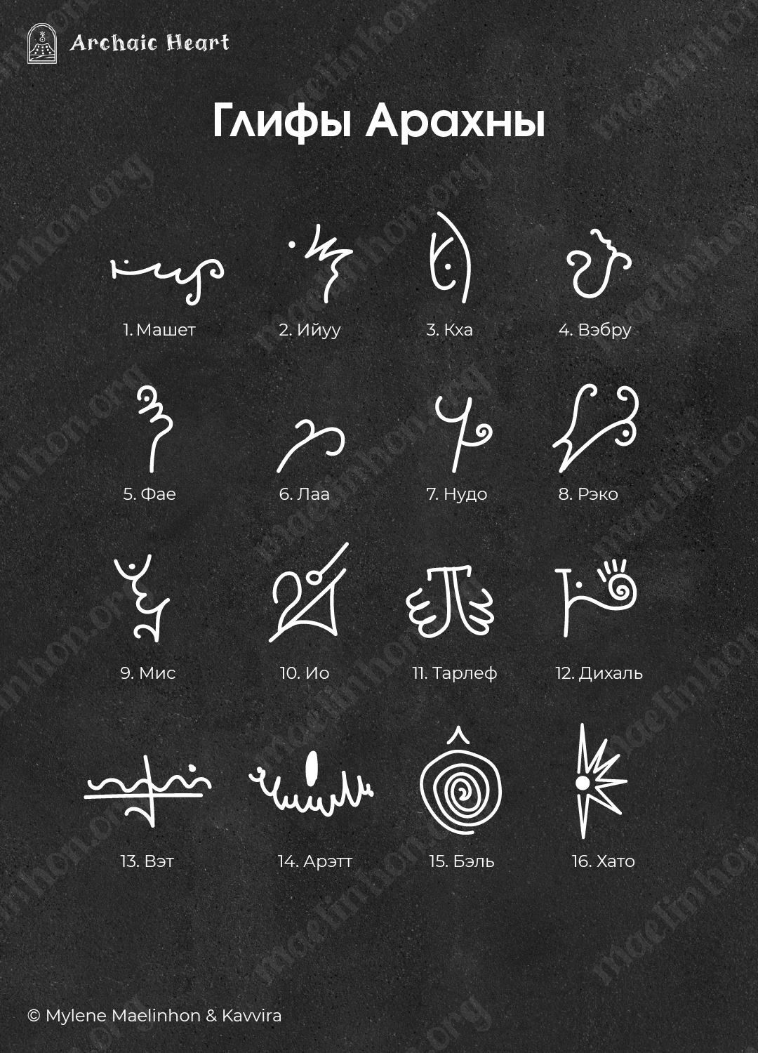 Оригинальная авторская считка легендарного магического алфавита — Глифов Арахны. Впервые в истории — все 16 глифов.