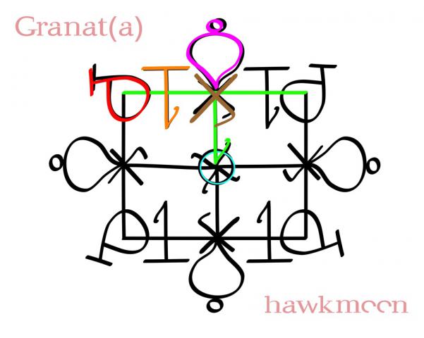 Работа из моей серии Восточных Сказок. Состоит из глифов Царя Давида и алфавита Ицхака. По глифам не разбирать, рисовать целиком как картинку. Порядок нанесения ниже на картинке показан цветом и описан.