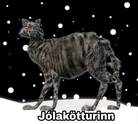 Впрочем, сейчас говорят, что Jólakötturinn съедает только праздничное угощение (зато целиком), возможно его хозяйка — огромная тролльша Грила (Grýla) стала лучше его кормить.