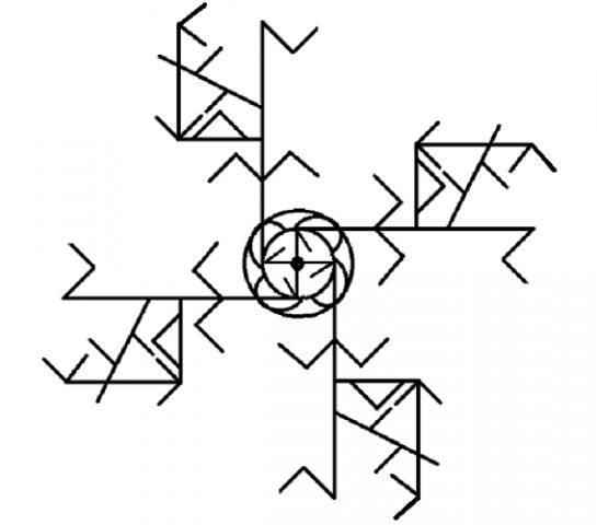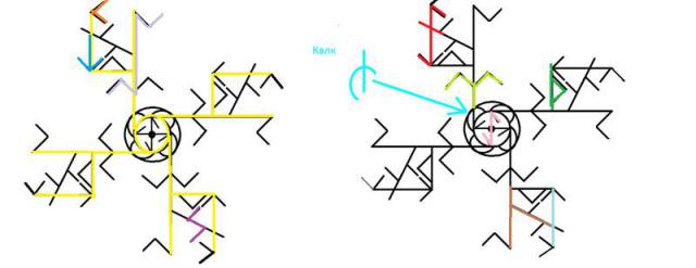 Эта Свастика является даже более Могучей, чем Глаголевая и Еровая. Но Её почти забыли на Земле. Она сейчас чаще используется в вышивках, а для Защиты ЖизнеСтроя редко. Раньше многие применяли Свастики, а эту — редко, для особых случаев, в Особо Ответственных Зонах. Для Защиты Органов Чувств, Органов Воспроизводства.