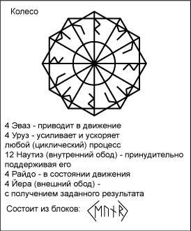 Колесо состоит из формулы: Эваз — Уруз — Наутиз — Райдо, заключенных в Йеру.