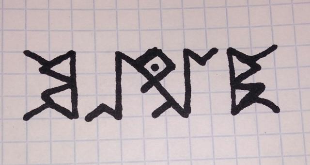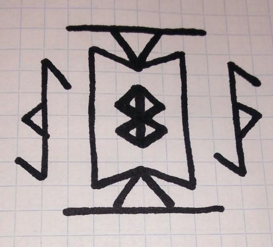 Слева сама проблема — обреченная женская доля в виде зерк.Беркана+Перто. В середине Отала — голова, точка — блок. Квеорты по краям выжигают и уничтожают этот блок. Беркана+Перто справа — женщина замужняя, обретшая свою судьбу, счастливую женскую долю.