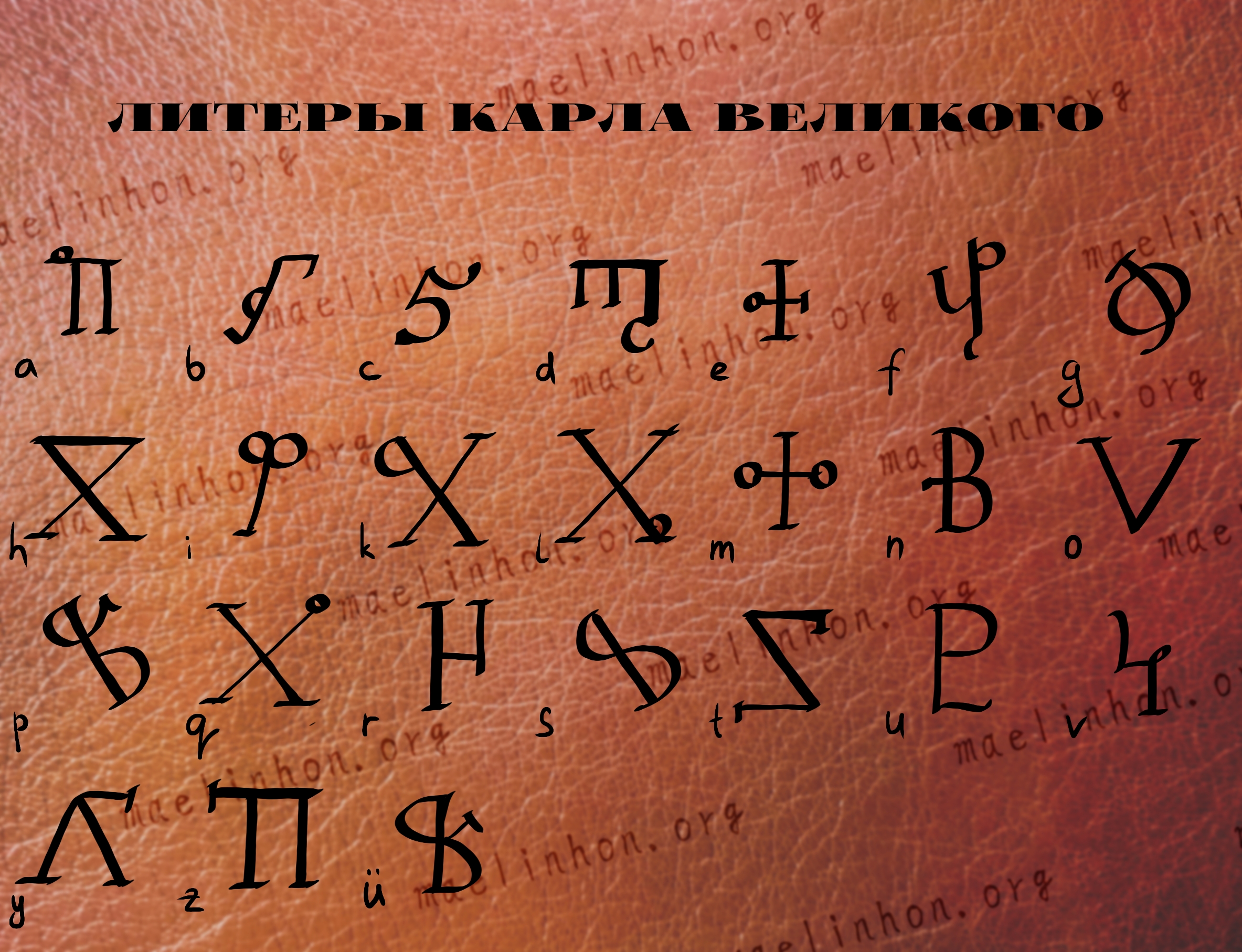 Магический алфавит — Литеры Карла Великого. Они же — Литеры феи Красного Вина. Изначально — галльский магический алфавит.