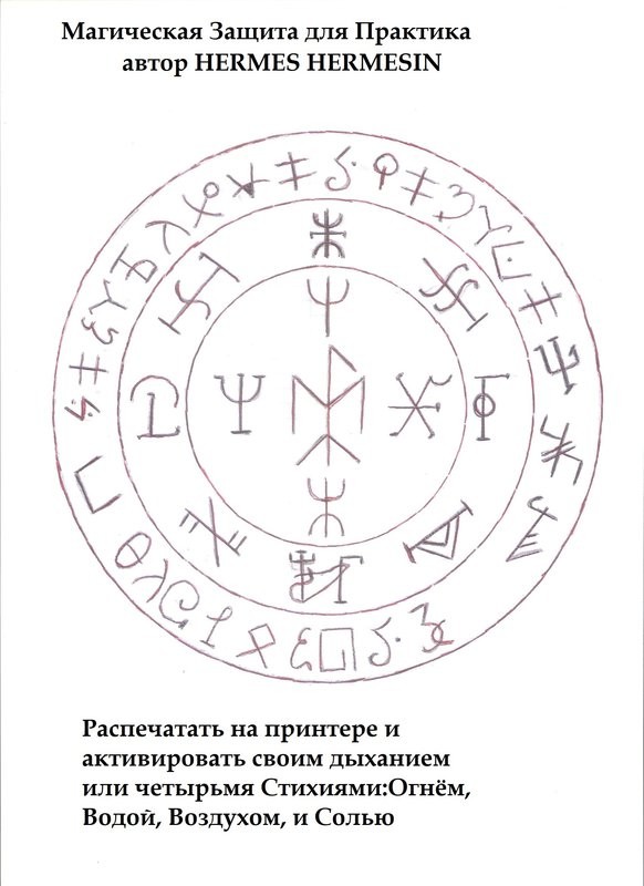 Пусть силой Русского Магического Алфавита, рун и литёр, будет создана магическая защита для практика, которая защищает от злой магии; возвращает вред тому, кто сделал; увеличивает силу воздействия; отводит несчастья, и наводит морок; наносит вред врагу, и защищает физическое тело человека.
