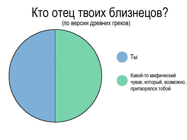 Итак, одной древнегреческой ночью Зевс принял облик царя Амфитриона, чтобы поиграть в шарады с его женой Алкменой. А через девять месяцев у Алкмены родились близнецы: один от Зевса, другой от Амфитриона, что было абсолютно нормальным явлением в то время.