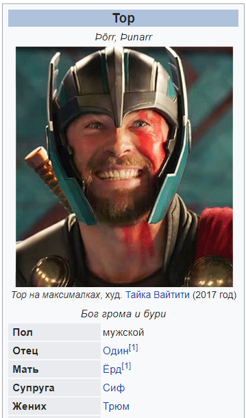 Если вы зайдете на страницу о Торе в норвежской википедии, то увидите примерно следующее (надписи переведены на русский язык для того небольшого процента моих читателей, у которых IQ меньше 200):