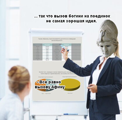 Афина стала богиней тактики, стратегии и других героических штук. И рукоделия — нужно же было чем-то привлечь женский контингент. В отличие от бога войны Ареса (которого Афина клала на лопатки при каждом удобном случае) Афина не получала удовольствия от битв и всегда старалась решать проблемы мирным путем. Но не всегда у нее получалось сдержать свой гнев. Возьмем хотя бы случай с Арахной.