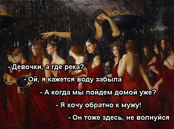 За эти страшные преступления данаидам была уготовлена специальная кара в Аиде. Они вынуждены носить воду из реки в дырявый сосуд. Это символизирует… хм… отсутствие фантазии у главного пыточного мастера.