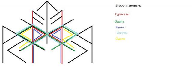 Йера — зацикленность встреч, постоянные встречи, длительная работа става + Гебо + 2Ансуза + второплановые Вунью — радость от этих встреч, приятная беседа, помощь в создании любовных или романтических отношений + второплановые Одал — заставляет взглянуть на партнера по другому, усиление, привязанностей, связей.
