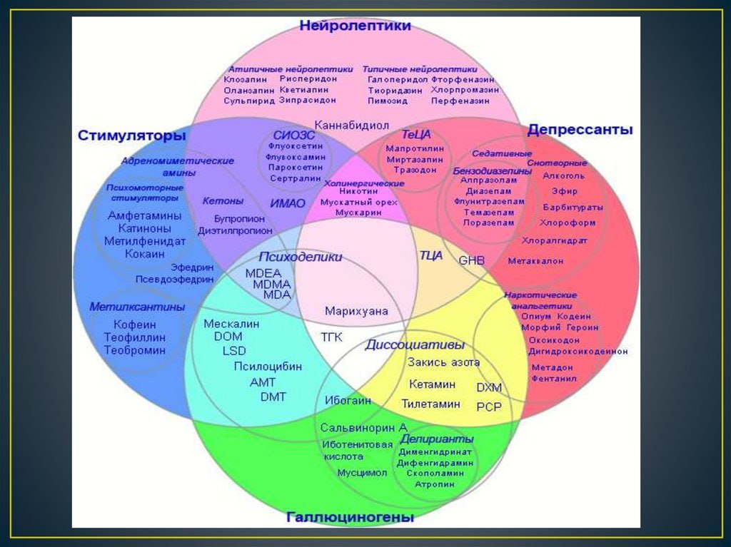 Пограничную нишу между Стимуляторами и Галлюциногенами занимают Психоделики. Это особый класс веществ, о котором мы поговорим подробнее.