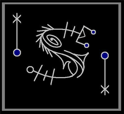 В составе весьма странный набор рун — Z и M эльфийские, Турисазы, Соль, Лагузы, спираль и две чудные волшебные палочки Соль-Хагалл.