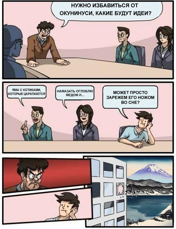 Сусэри-бимэ помогла Окунинуси и здесь — она дала ему одеяло. Магия одеяла заключалась в том, что если им накрыться с головой, то осы не будут тебя жалить.