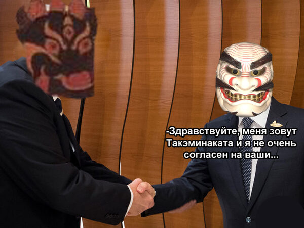 Старший сын, Котосиронуси, согласился без лишних уговоров. Младший сын, Такэминаката, пытался немного выделываться, но столкнулся с жесткими дипломатическими навыками бога Могучий Гром: