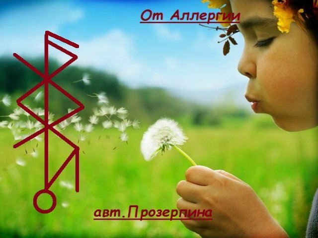 Данная руническая вязь излечивает от всех проявлений аллергии у (имя, кличка). (И дальше по классике)