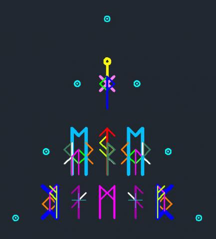 Обратите внимание, что правая часть сделана зеркально, это сделано для общей симметричности композиции. Но это не зеркальные руны, а прямые руны, которые рисуются справа -налево (это один из вариантов написания рун). Если Вас это смущает, то можете рисовать их слева направо, суть от этого не изменится.