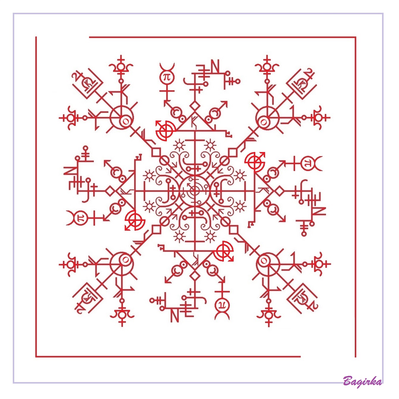 В ставе также добавлены Символ Меркурия (Меркурий отвечает за контакты, понимание, информацию) и Алхимические Символы для специфики работы става в области медицины, а также четыре Глифа Лидер, Греческие Символы Пи и Омикрон.