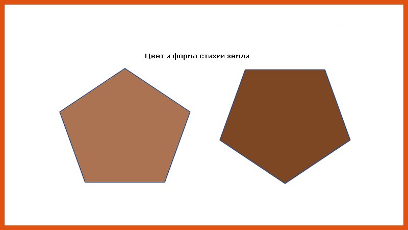 А формой земли является пятиугольник. При этом следует учитывать, что направленный вверх, он означает энергии, которые можно было бы назвать околофизическими, а если его острие показывает вниз, то это уже структура физического мира, с низкими вибрациями или, другими словами — приземленная.