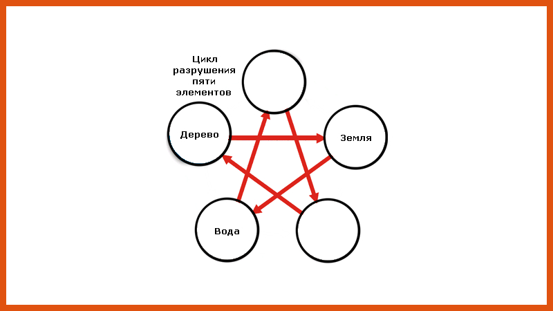 Если взглянуть на круг, в котором взаимодействуют пять элементов фэншуй, то нельзя не заметить, что стихии могут уничтожать друг друга. Согласно циклу разрушения, земля способна подавить воду. Это можно увидеть в природе, когда берега держат в рамках потоки речных вод. А землю превращает в пыль стихия дерева. В физическом мире это наблюдается повсюду, где есть растительность. Земля под нею часто нездоровая и опустошенная.