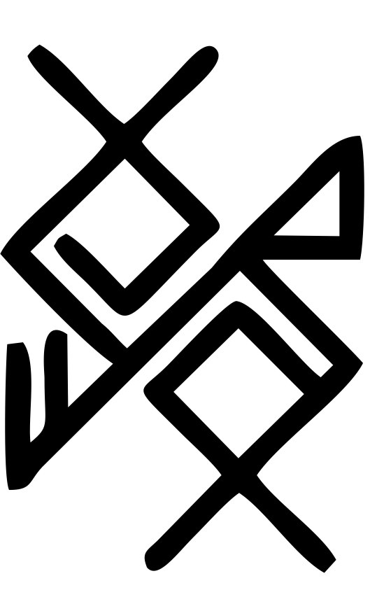 Хагалаз в этом (1-ом) ставе является скрытой руной-шифром 2/1(2 Атт/1 руна) и выглядит примерно так: