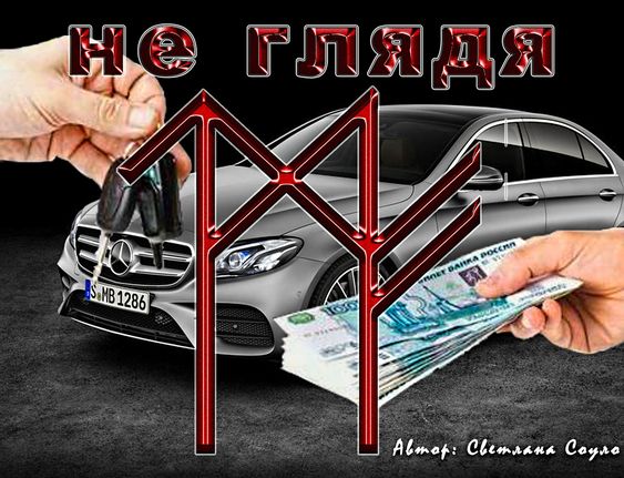 Через трансформацию руны Дагаз и с помощью Тейваз-стремительно ,удачно продаю или меняю свою машину на деньги-феху ,как удобней так и говорите. Манназу( Пете Сидорову..или будущему хозяину моей машины,ну или сами придумайте кому продаете))) под покровительством ВС -Альгиз