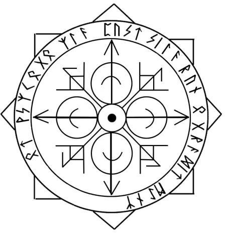 По кругу: Пусть сила рун оградит меня (в этом месте вставляется имя оператора) от всякого зла.