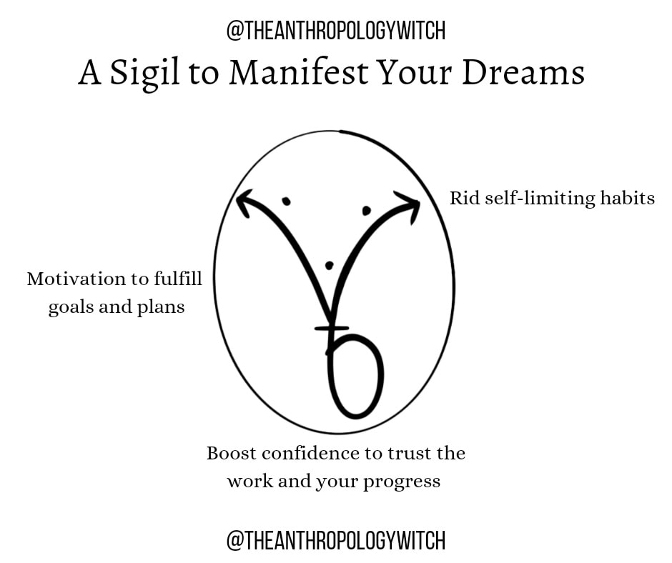 Сигила для воплощения задуманного. Помогает избавиться от самоограничивающих привычек, даёт мотивацию реализовать цели и планы, повышает уверенность и доверие себе и своей интуиции.