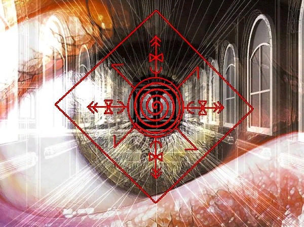 Центр — глиф «расширение», боковые линии — Лагузы, прямые — глиф «чаша/получение», потом Дагаз, потом Ансузы (прямой и зеркальный), заключено все в глиф «действие».