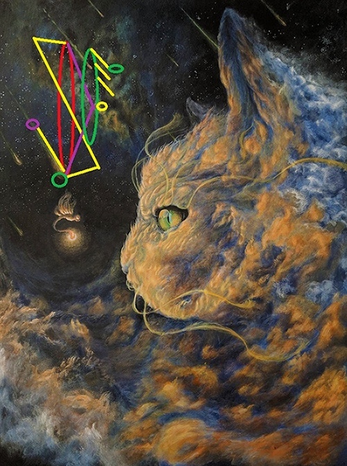 Что-то облачно сегодня, в самый раз для облачного кота.) Облачный кот — это фильга, ну то есть дух-помощник говоря по-простому. Ему присуще то же, что и любой кошке: ловкость, ум, независимость, умение предвидеть события и видеть сущности, а так же мгновенно реагировать на любое изменение ситуации и, уж если придётся падать, то приземляться на четыре лапы. Облачный станет вашим лучшим другом и помощником, если вы того захотите. И поскольку постоянно спрашивают какой-то пример оговора для таких работ, напишу его ниже. Итак, сперва наносите став на носитель, затем оговор.
