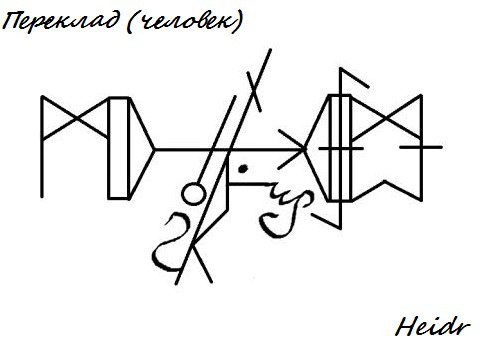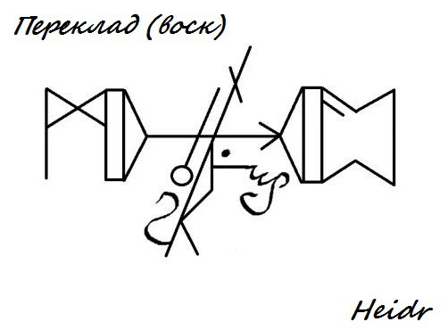 Принцип работы: Создается канал (Tví-örvaðr bogi) между людьми (Манназы), через который переходит (Райдо) оговоренный и накопленный (глифы) заранее негатив. Тейваз дает направление, Наутиз — принудительный процесс для того, кому передается всё добро. Волчий крюк создает сцепку негатива и одАренного, Стан и Стангин Исы — последний штрих, первый закрывает жертву и канал, вторые — морок и скрытие произошедшего.