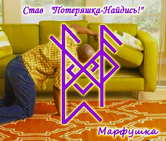 «Данный рунический став, в кротчайшие с комфортом для меня сроки, убирает все блоки с моей памяти, дает озарение и помогает вспомнить, где находится …(такая-то вещь-потеряшка) или сразу найти её. Данный рунический став действует без вреда моему психическому и физическому здоровью, без вреда моим добрым духам и добрым духам моего жилища, без вреда для других ставов активированных мною, и пропускает магию и воздействия творимые мною! Данный рунический став активирую (так-то). Данный став выполняет свою работу до тех пор пока я не отпущу его с благодарностью к Рунам! Да будет так! И так и есть!»