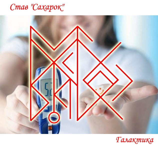 Данный рунический став с комфортом для » …..» нормализует работу его поджелудочной железы, печени и кровеносной системы, запускает скрытые резервы организма на уравновешивание выделяемого и потребляемого инсулина, а также став восстанавливает здоровый гормональный баланс, очищает кровь от лишнего содержания сахара, восстанавливает кожу и зрение до здорового состояния, и укрепляет организм на выздоровление от диабета.