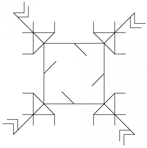 5. Для защиты(можно оговорить вт. Альгиз). Вот тут использовать осторожно тем, кто промышляет «темными делишками». Став не будет защищать против обраток и откатов. Ставом можно защитить и свою работу(не магическую) от посягательств на неё. Например: вы написали картину. Сзади наносите данный став и оговариваете, чтобы став защищал авторство картины. Если кто-то попытается выдать вашу картину за свою, то последует наказание. Став можно использовать и для защиты паблика/группы/сайта. Для этого, напишите в центре става адрес паблика/группы/сайта и оговорите, что став защищает паблик/группу/сайт от воровства, плагиата и т.д. Если такое случится, то последует наказание.