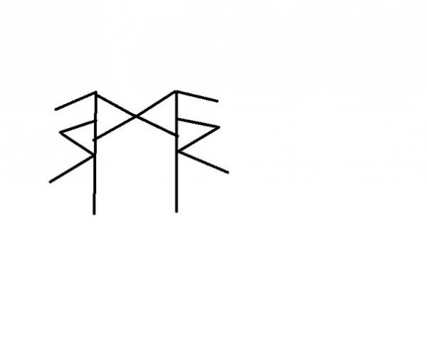 Руны: манназ, дагаз, зерк. ансуз, ансуз, зерк. райдо, райдо, зекр. совило, совило, зерк. вуньо, вуньо.