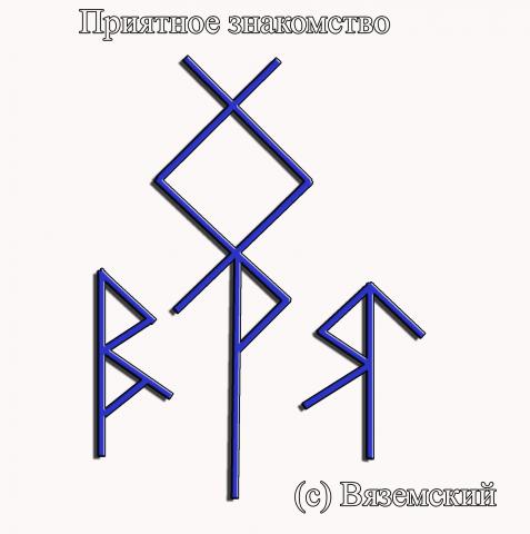 Слева и справа мужчина и женщина стремящиеся друг к другу. В центре символ их объединения. Руны подобраны именно на создание семьи, серьезных отношений, в идеале — навсегда.