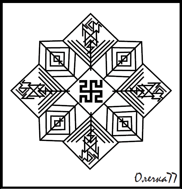 Символ Родовик — символизирует Светлую Силу Рода — Прародителя, помогающей народам Великой Расы, оказывает постоянную поддержку Древних Много-мудрых Предков. Охраняет нить человеческой жизни. Даёт связь и поддержку умерших .